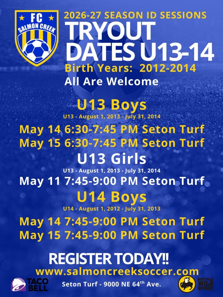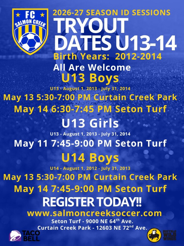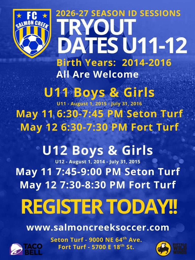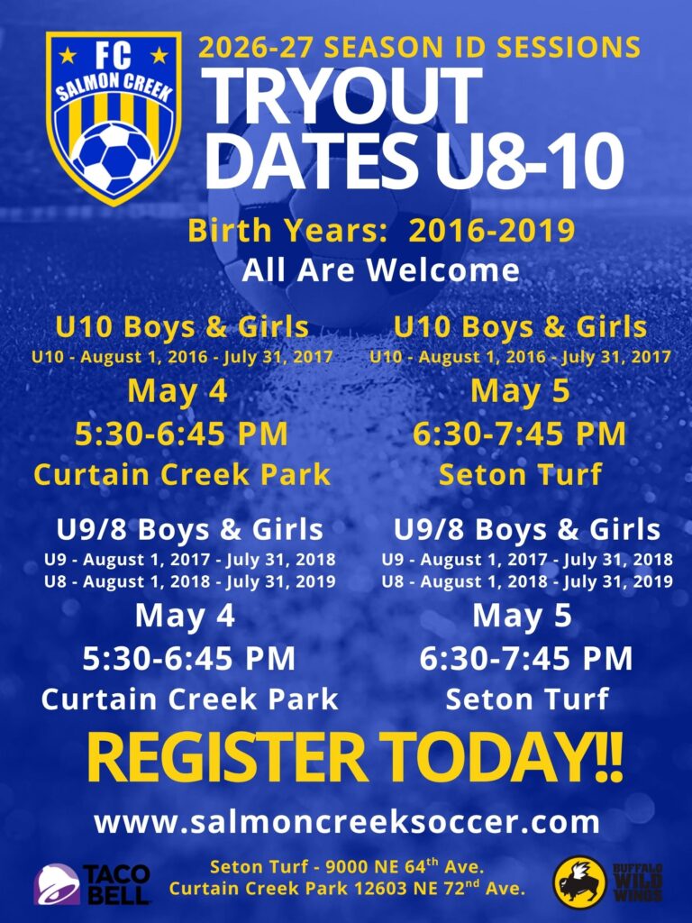 The FC Salmon Creek U8-10 Academy Program is for players that are interested in playing at a higher level of club soccer than what Recreational soccer offers. Players are required to try out each May and selected players will be placed onto teams for their age.